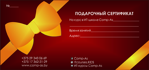 А вот и идея — ПОДАРОЧНЫЙ СЕРТИФИКАТ на один из курсов IT-школы Comp-As.